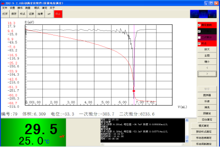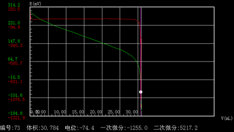 方案成熟,過(guò)程注意實(shí)驗(yàn)用氫氧化鈉標(biāo)準(zhǔn)溶液配制好后需標(biāo)定濃度。此化學(xué)反應(yīng)突躍明顯,但需設(shè)置在“中”mV量在100~150mV之間。