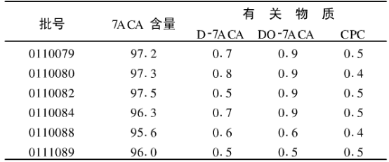 五、高效液相色譜法測定7-氨基頭孢烷酸含量結(jié)果